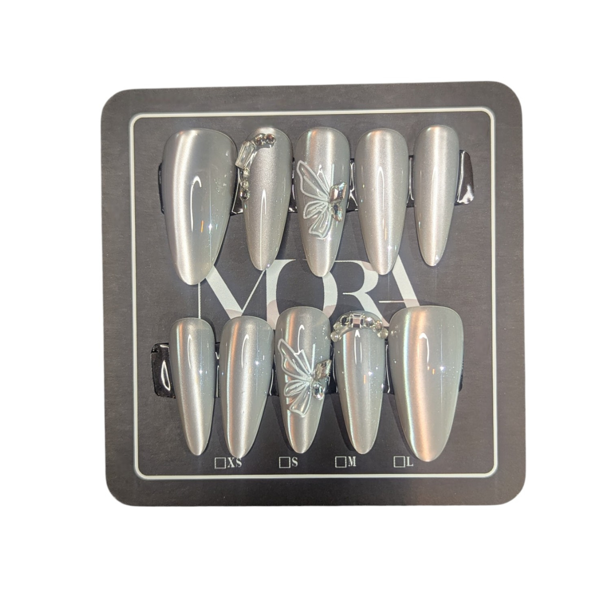 Κανονική τιμή €10,99Τιμή προσφοράς €10,99 Κανονική τιμήΤιμή ανά μονάδα / ανάΑναδείξτε την κομψότητα και τη λάμψη σας με το ''Silver Moonlight Elegance''.Ένα σετ νυχιών σε αποχρώσεις ασημί–γκρι με λαμπερές λεπτομέρειες και διακριτικά strass που θυμίζουν φως...
