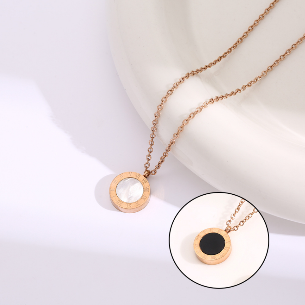 Κανονική τιμή €10,99Τιμή προσφοράς €10,99 Κανονική τιμήΤιμή ανά μονάδα / ανάΈνα εκλεπτυσμένο κολιέ με στρογγυλό μενταγιόν σε ροζ χρυσό (rosegold) και χρυσό φινίρισμα και μαύρη πέτρα στο κέντρο. Το σχέδιο με τους ρωμαϊκούς αριθμούς χαρίζει διαχρονική...