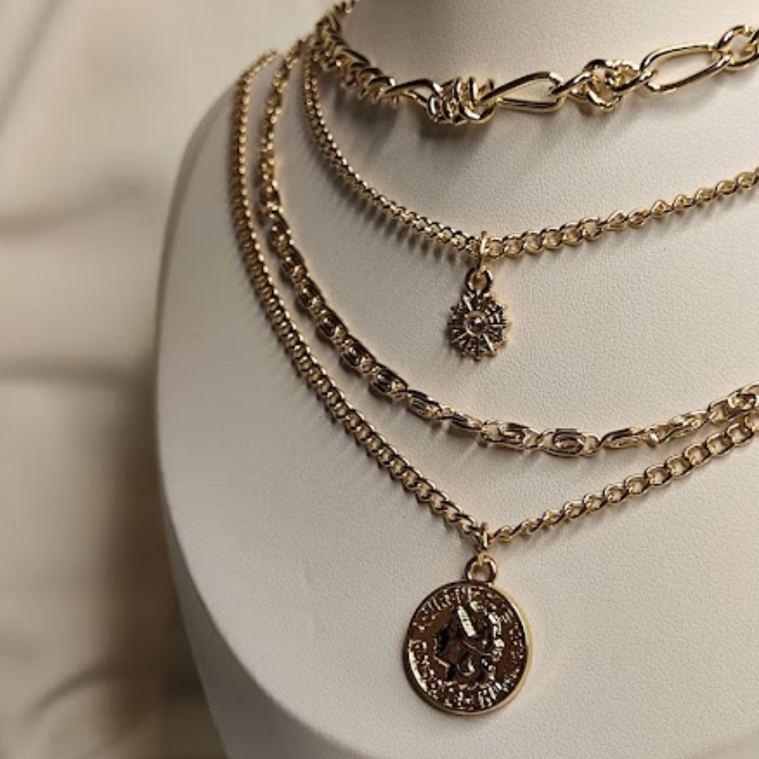 Αναδείξτε το καλοκαιρινό σας στυλ με το "Golden Horizon🌅" – ένα σετ από τρία εντυπωσιακά κολιέ σε layering σχεδιασμό. Οι αλυσίδες σε διαφορετικά μήκη συνδυάζονται με κρεμαστά στοιχεία ήλιου & νομίσματος, δημιουργώντας ένα μοντέρνο και ταυτόχρονα διαχρονικό look.