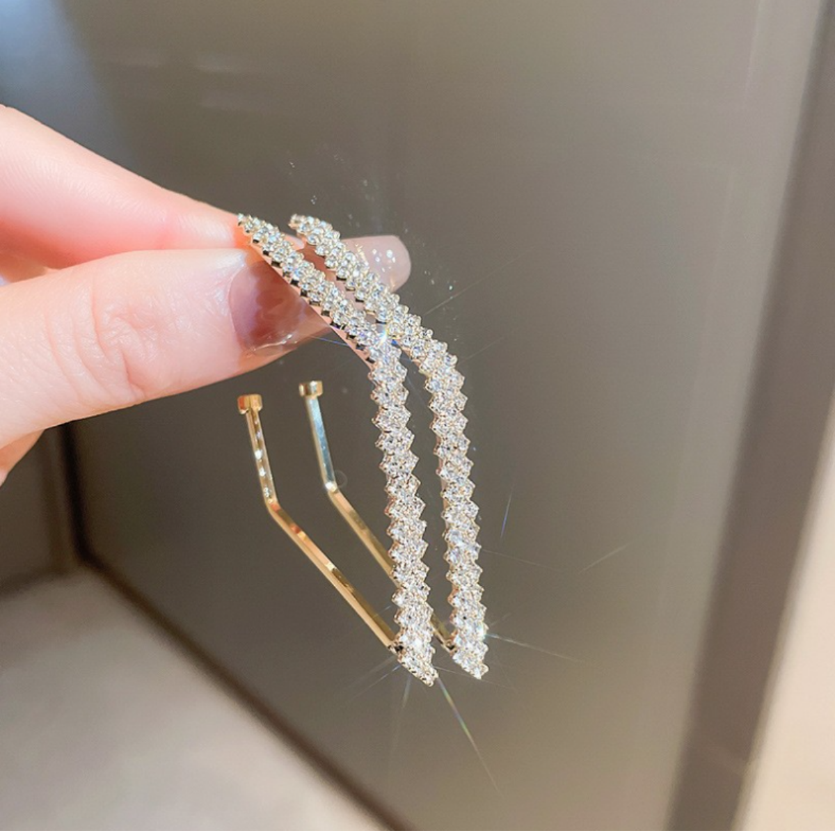 Με διπλή σειρά από αστραφτερά ζιρκόν που λαμπυρίζουν σε κάθε κίνηση ✨, αυτά τα σκουλαρίκια είναι το απόλυτο statement κομμάτι για βραδινές εξόδους αλλά και για να κάνεις το καθημερινό σου outfit πιο luxury 👑.