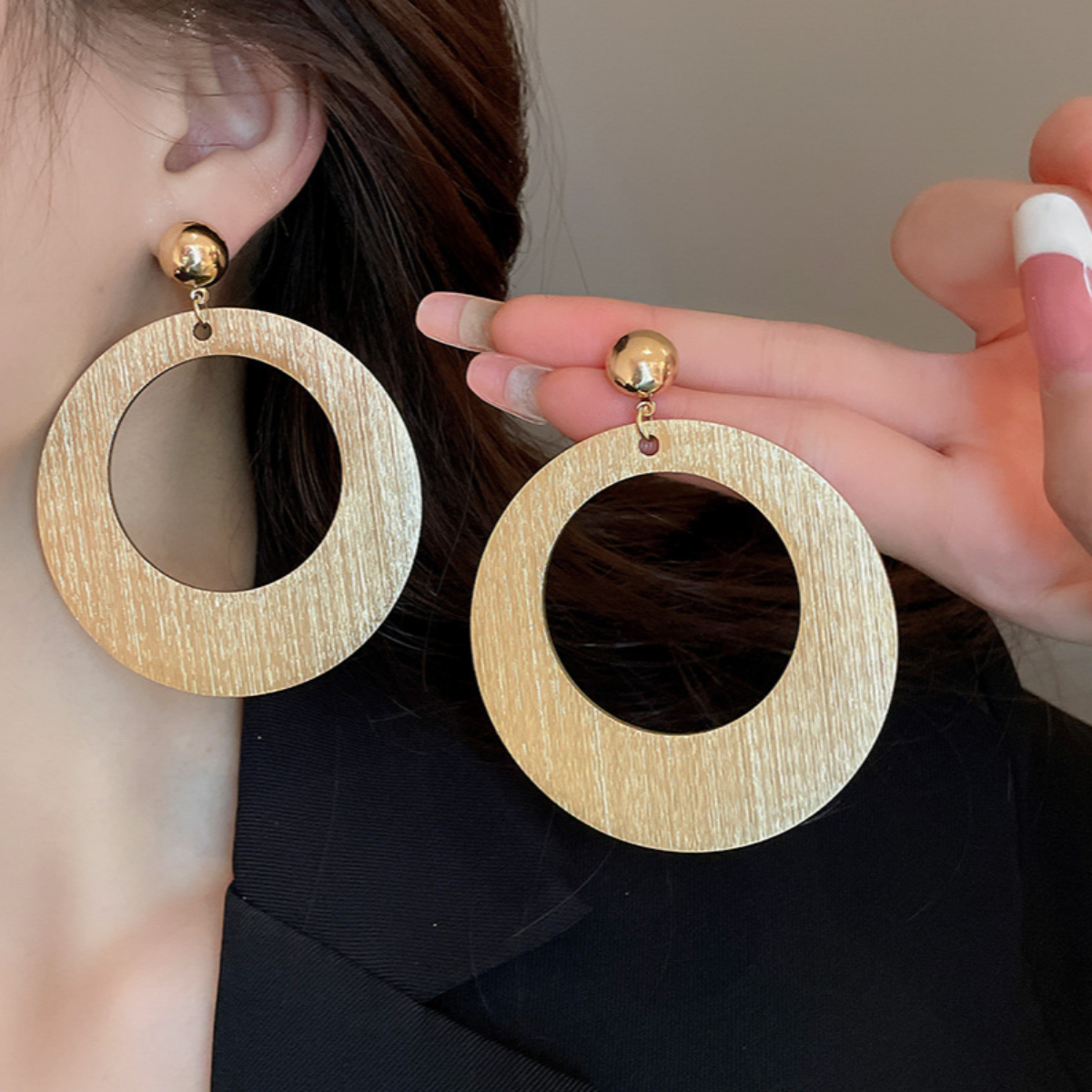 Εντυπωσιακά σκουλαρίκια-κρίκοι σε μεγάλο στρογγυλό σχέδιο με ματ υφή, ιδανικά για να δώσουν μια μοντέρνα και κομψή πινελιά σε κάθε σας εμφάνιση. Το ελαφρύ τους βάρος τα καθιστά άνετα για πολύωρη χρήση, ενώ η χρυσή τους απόχρωση προσφέρει διαχρονική λάμψη. Ιδανικά για βραδινές εξόδους, αλλά και για να αναβαθμίσουν ένα minimal καθημερινό look.