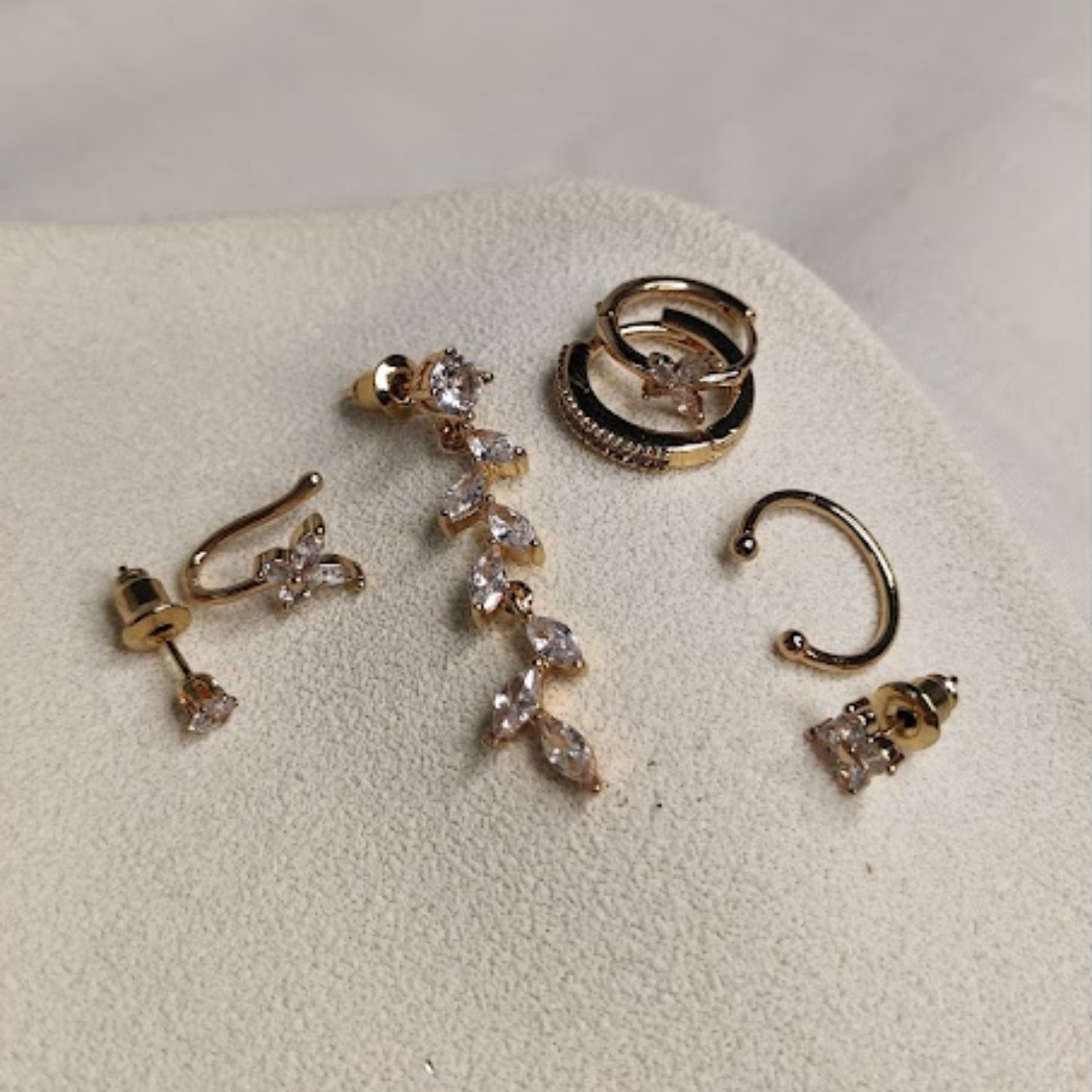 Το Aurora Bloom Set ✨🌸είναι ένα πολυτελές σετ σκουλαρικιών με έξι διαφορετικά σχέδια που συνδυάζουν αρμονικά κομψότητα και λάμψη. Από το εντυπωσιακό κρεμαστό φύλλο με ζιρκόνια μέχρι τα διακριτικά stud και τους κομψούς κρίκους, το σετ αυτό προσφέρει απόλυτη ευελιξία στο styling. Φοριούνται μαζί για glamorous layering ή ξεχωριστά για minimal αισθητική. Ιδανικό για γυναίκες που αγαπούν να ξεχωρίζουν με στυλ και διακριτική πολυτέλεια.